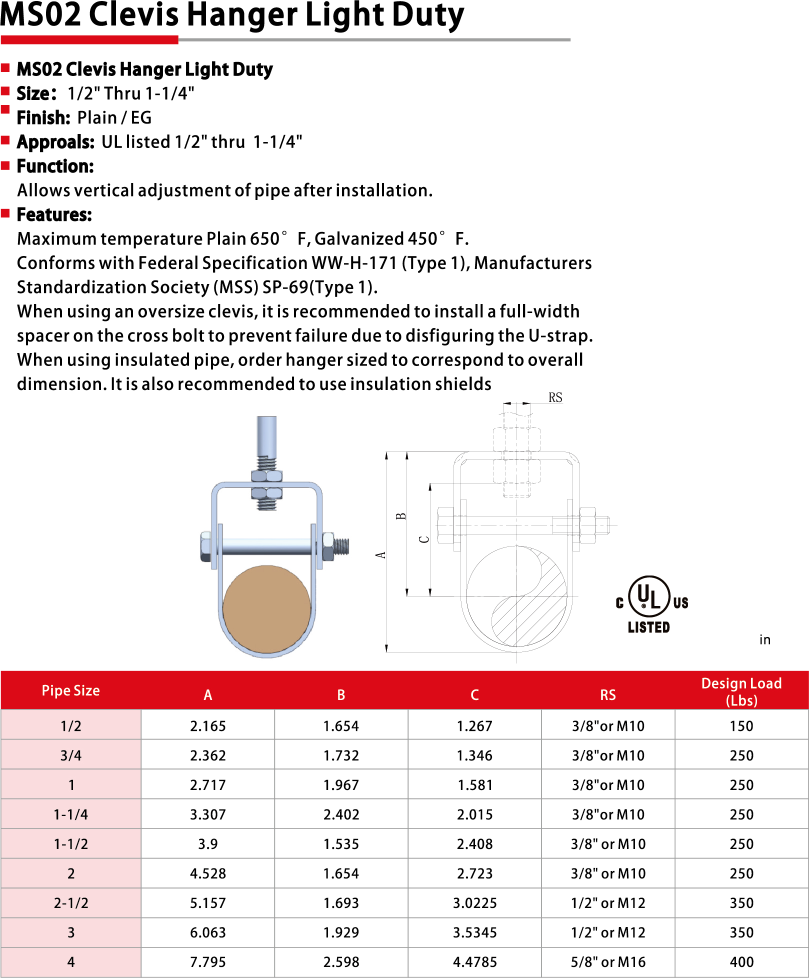 MS02 Clevis Hanger Light Duty